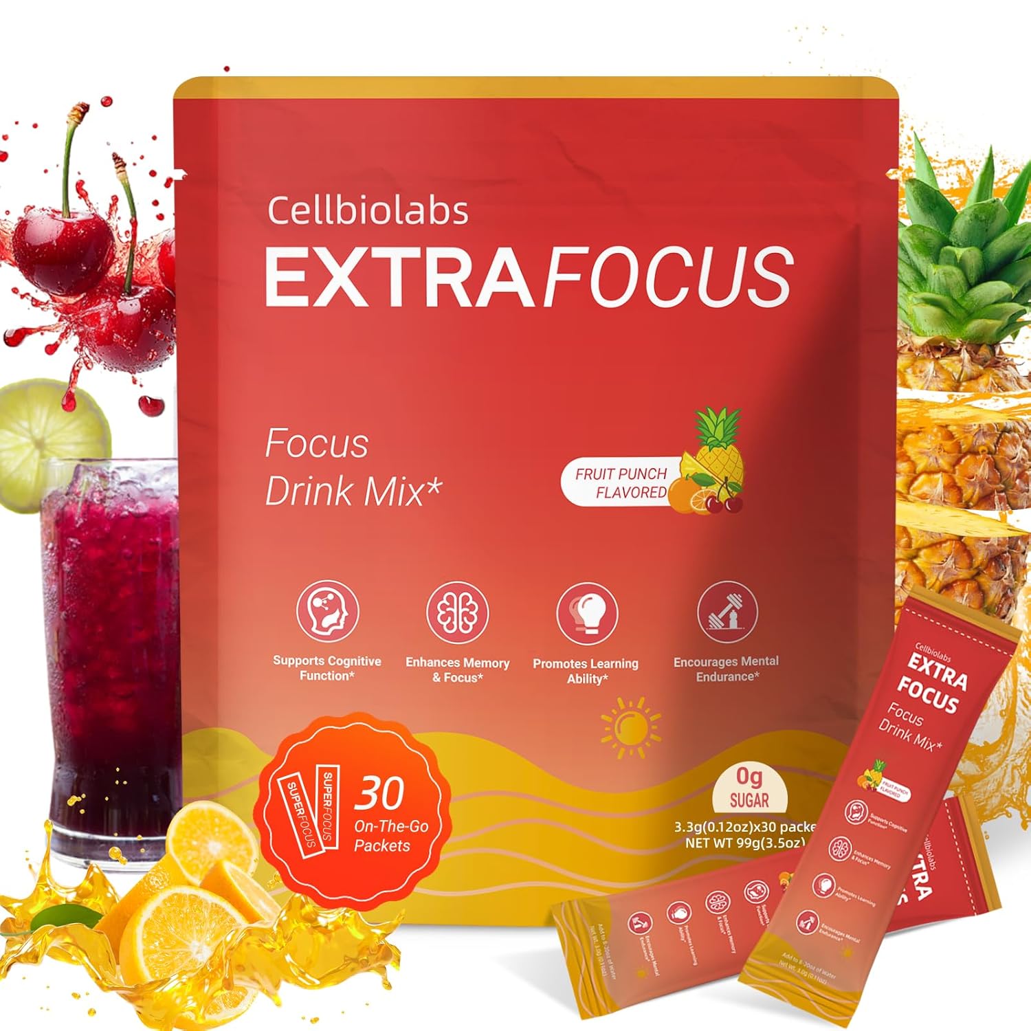 These sachets are formulated with ingredients to support cognitive functions like focus, memory, and mental clarity. Key ingredients often include Lion's Mane mushroom, Bacopa monnieri, L-theanine, and Rhodiola rosea.