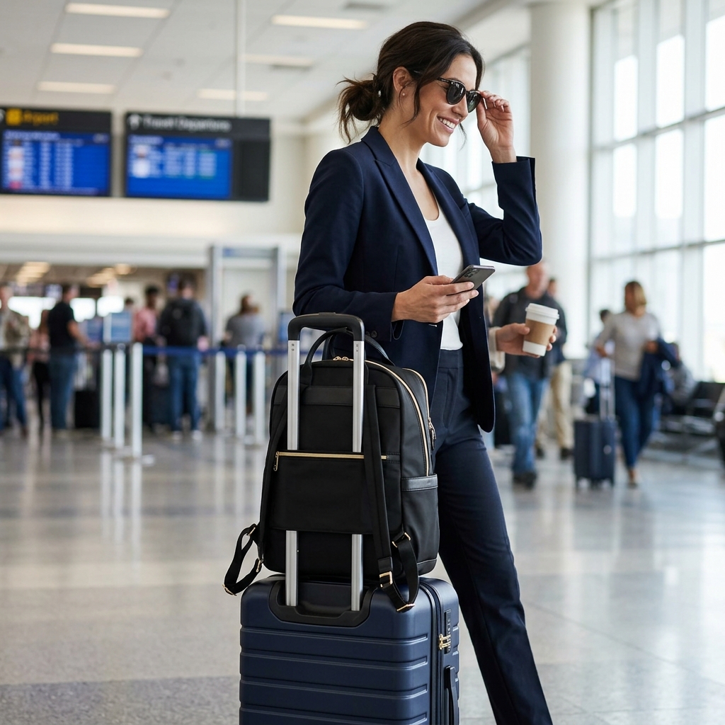 For the woman who moves seamlessly between business and leisure, the Tumi Voyageur Celina Backpack is a sophisticated choice. This backpack is designed to be both lightweight and durable, featuring Tumi's signature nylon with leather trim for a touch of luxury. Its thoughtfully organized interior includes a padded laptop compartment (fitting up to a 15” screen), multiple pockets for smaller essentials, and a water-resistant water bottle pocket. The key feature that places it at the forefront of this trend is the "Add-a-Bag" sleeve on the back, which allows it to slide effortlessly over luggage handles. This combination of elegant design and practical functionality makes it an iconic accessory for the stylish traveler, pushing the trend of integrated and smart travel systems.